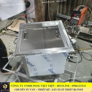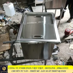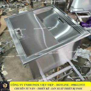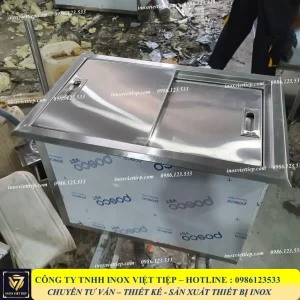 Thùng đá inox âm quầy 2 cánh lùa thông thường